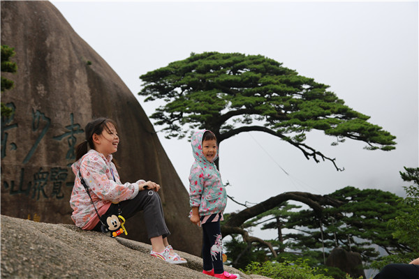 暑假已開始,家長們已經帶上孩子開啟黃山之旅了 張濤攝