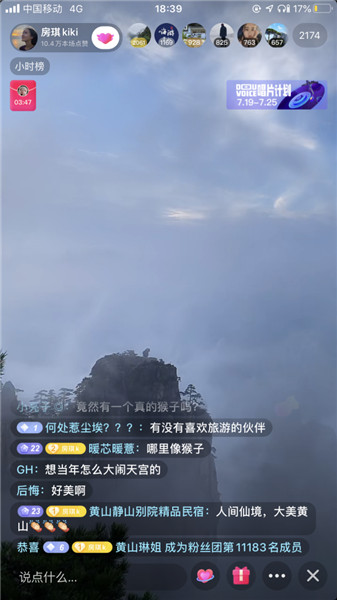 傍晚時分,夕陽西下,山間雲霧繚繞,房琪一行從雲亼山宿出發,經過夢筆生花、獅林長廊、清涼臺、獅子峰,最後再回到雲亼品嘗徽菜。三小時的直播,共計吸引14.3万人次觀看,互動人數2794人次,點贊18.6萬人次。