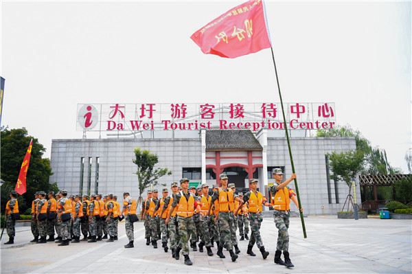 人民子弟兵在大圩遊客接待中心門前集結(劉環環/攝)