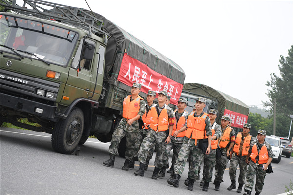 「非常感謝人民子弟兵的緊急馳援,給我們打贏這場防汛硬仗必勝的信心!」包河區人武部部長朱宏剛介紹,102名官兵主要分佈在大圩鎮迎河、黃港、余墩、慈雲、新民等11個村,負責南淝河、十五里河、圩西河各防汛堤段進行隱患巡查和搶險任務。(劉環環 柏永)