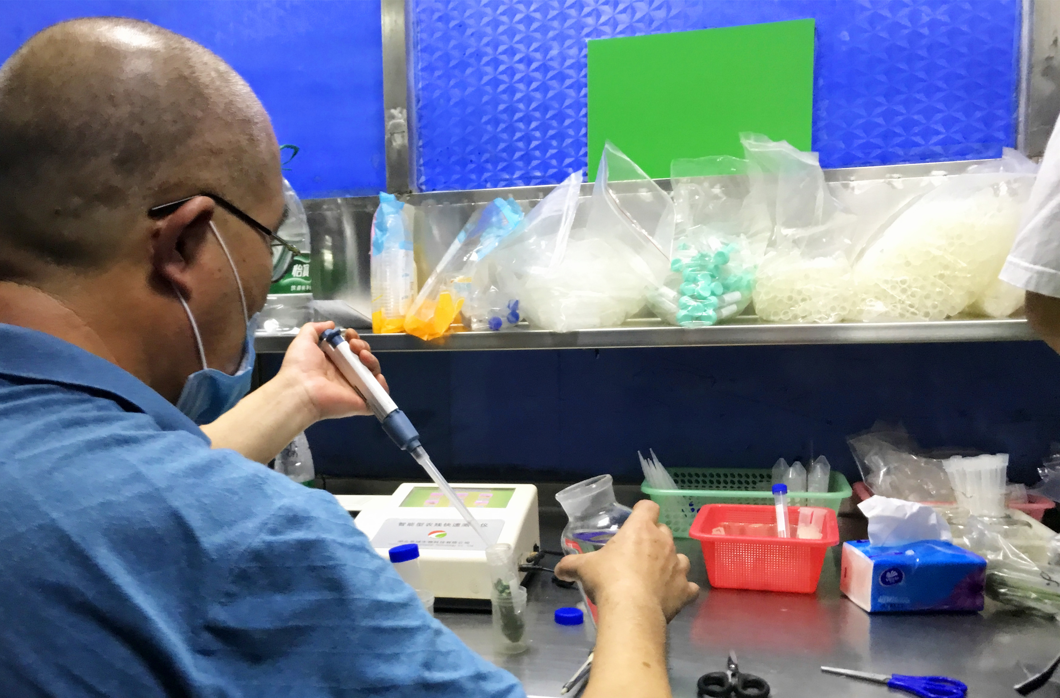 「每天快檢至少抽取10種蔬菜和肉類、水產品進行檢測……」在雙沙市場食品快速檢測室,等候這次突擊執法檢查快檢結果的間隙,丘家軍對記者說:「除了把好市場准入關,我們還嚴格食用農產品經營過程關,確保食用農產品所需的儲存、銷售條件符合,不在經營過程中濫用食品添加劑和使用非法添加物;同時,還要把好不合格食用農產品退市關,對自查、快檢發現的不合格產品,立即停止銷售並銷毀。」