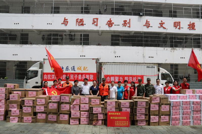 7月22日上午,青松食品黨支部前往肥西三河,捐贈70箱黑米粥、八寶粥、銀耳粥等營養粥品,600袋丹麥吐司,300袋北海道純蛋糕共計100箱蛋糕、粥類產品等,慰問抗洪一線的合肥武警總隊官兵。