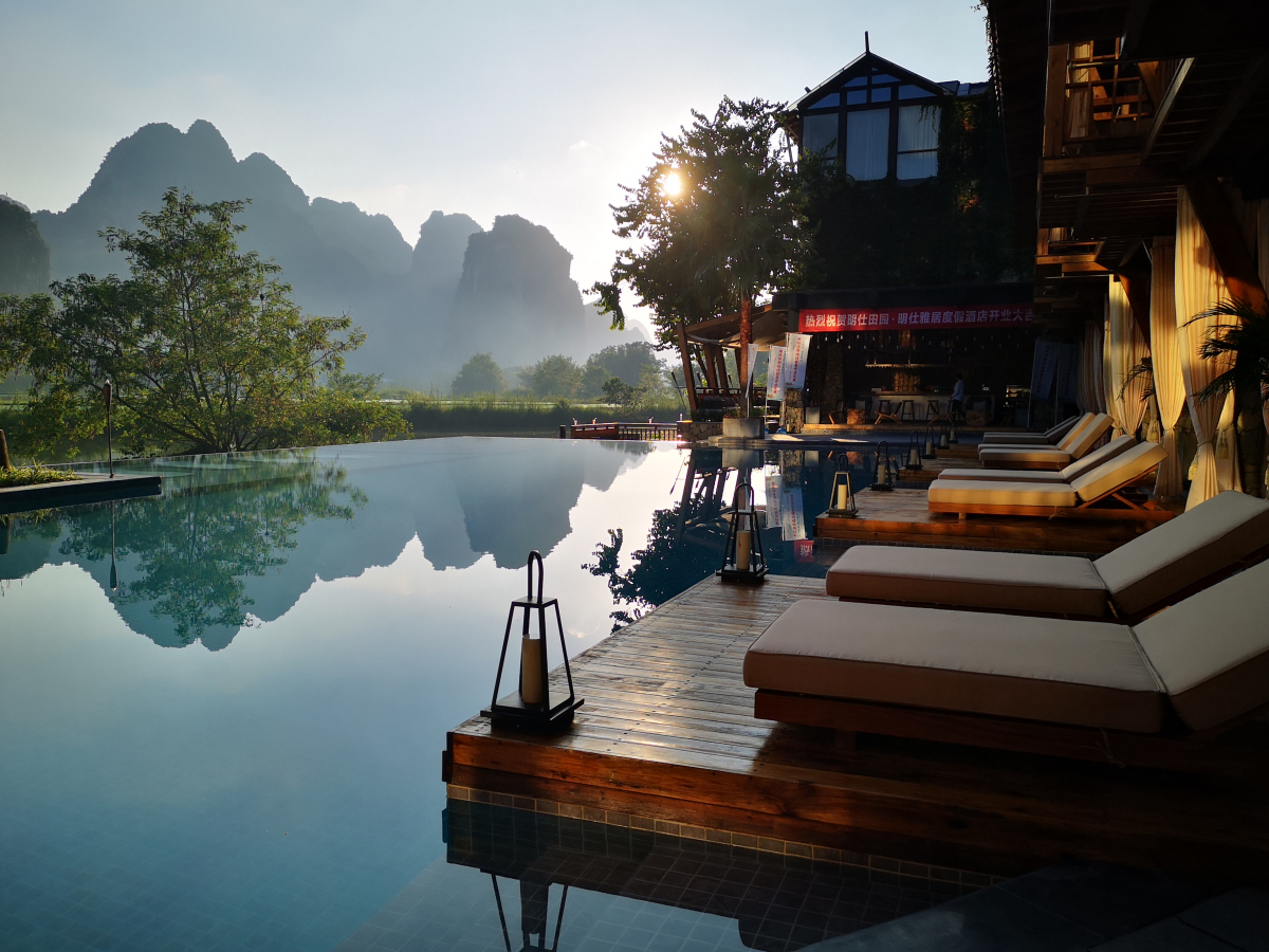 據介紹,明仕田園旅遊度假區位於廣西崇左市大新縣堪圩鄉,景區內山明水秀,是典型的桂南喀斯特地貌,是著名的「中越邊境山水畫廊」邊境旅遊目的地,被譽為「隱者之居」。自2000年以來,香港無線(TVB)及國內各大電視台、影視公司在明仕田園創作了多部耳熟能詳的影視作品。明仕雅居度假酒店位於風景旖旎的明仕河畔,以山為景、以水為趣、以田為意、以人為本而打造純粹的山水隱居、回歸大自然的生活為體驗的旅遊度假酒店,融入山、水、田、人的元素,詮釋天地人和的休閒生活理念,傳遞「山水相伴,自在明仕」的旅遊品牌。整個酒店的設計在保留了壯鄉農家情懷記憶的基礎上,融入現代時尚簡約的元素,營造民族傳統與山水文化相結合的美居空間為理念。以親近自然、返璞歸真的超級體驗,打造一種輕鬆真實、舒暢溫暖的旅居生活方式。客房設計把明仕的山水精華融入每一間客房,客房風格按體驗感分為親水、浴陽、星空三種,每一間客房幾乎都自成風格。
