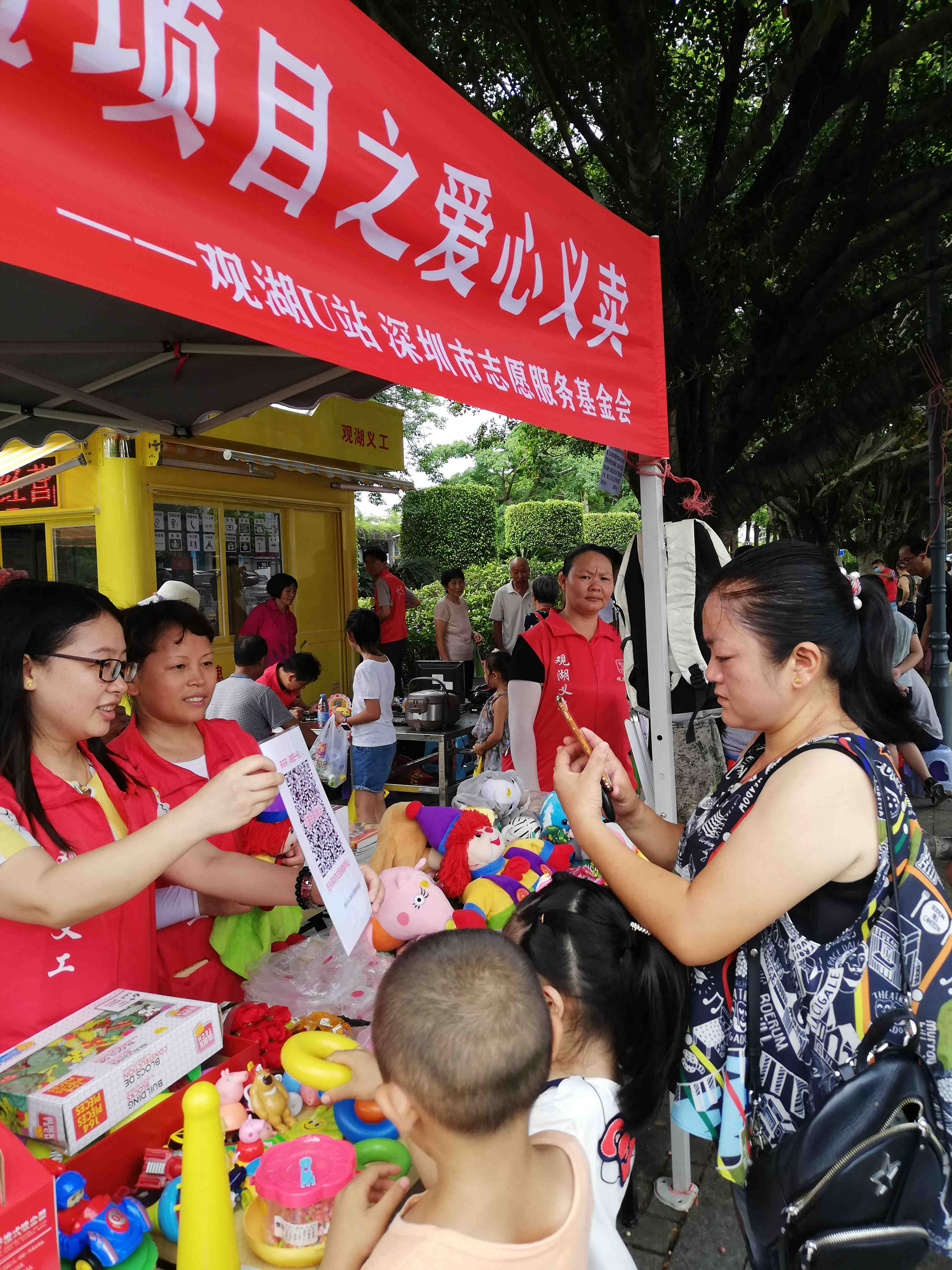 更值得點讚的是,因天氣炎熱,高溫酷暑,為了給附近環衛工人提供固定休息場所,觀湖U站利用地理位置優勢,購置桌椅,設立「愛心歇腳點」,同時購置飲水機,設立「愛心飲水點」提供冷熱水滿足不同人群的需求,每天無償供應飲用水。觀湖U站還無償為他們提供各類應急藥品、愛心電話、報紙雜誌、愛心紅雨傘、300M極速WIFI、各種棋類、針線包、諮詢指引等十幾種便民服務。為了弘揚愛心,觀湖城市U站聯合深圳市志願服務基金會開展「U愛工場」愛心義賣活動。義賣物品,如:文具、圖書、玩具、小工藝品等,大多數來自於廣大市民家中閒置不用又可以物盡其用的,無償的捐贈給U站義賣,義賣所籌善款7千餘元全部捐到深圳市志願服務基金會。
