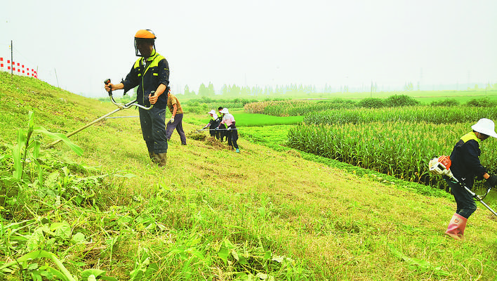 在中垾聯圩的背水坡,安徽巢湖市林業人員正在清理植被,以便及時發現險情。