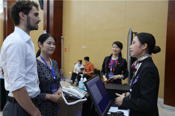 為了逼真模擬接待場景,主辦方還邀請到了外國朋友扮演酒店訪客。在現場,記者遇到了扮演酒店訪客的美國小夥子,他的中文名叫洪銘。他來自美國的亞利桑那州,在深圳一家高科技中國公司工作,說著一口流利的中文,他去年在深圳舉辦的外國人講中文比賽中獲得冠軍。他向記者介紹說,這些選手年紀輕輕,但能力挺強的,超出了他的預期。英語非常非常好,服務態度、服務水準都是一流的。他還說,他經常出差到世界各地酒店入住,這些選手的綜合水準,不亞於五星級的服務員。