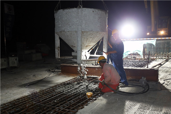 「連續鋼構橋合龍需要選擇在全天氣溫最低的時段進行混凝土澆灌。通過熱脹冷縮作用,整個混凝土的構伴和整橋受力才能處於最佳狀態。」濟洛西項目土建二標項目經理熊祖發介紹。