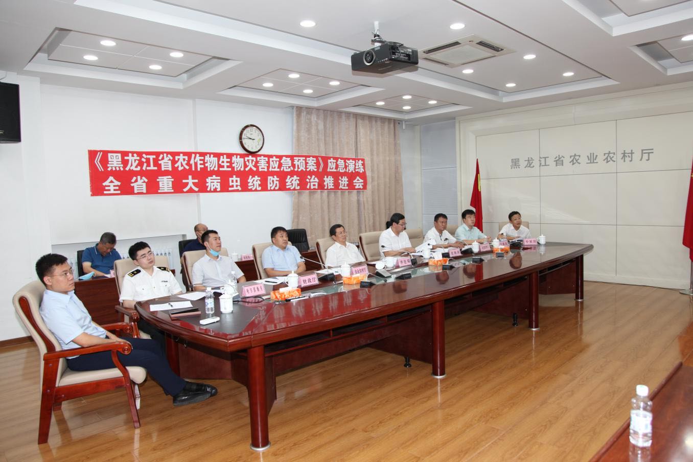 【香港商報網訊】7月27日,黑龍江省農業農村廳組織召開了「《黑龍江省農作物生物災害應急預案》演練及全省重大病蟲害統防統治推進會」。會議採取視頻形式召開,主會場設在省農業農村廳,省農業農村廳有關領導及省應急管理廳、省財政廳、省氣象局、省供銷合作聯合社、哈爾濱海關等省農作物生物災害應急指揮部成員單位相關負責同志參加會議。會議在有關市(地)、縣(市、區)農業農村局及北大荒農墾集團有限公司設立70個分會場。會議由龐海濤總農藝師主持,省農業農村廳副廳長李連瑞任演練指揮長,並對重大病蟲防控工作做了工作部署。