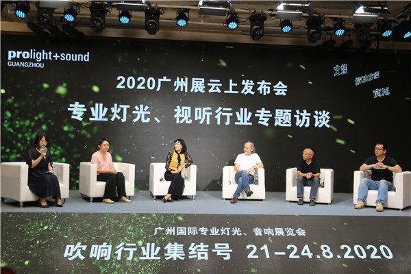 在專題訪談環節,廣東省舞臺美術研究會會長梁溪清、廣東省聲像燈光科技促進會會長彭妙顏、廣州市夜太陽舞臺燈光音響設備有限公司總經理王志軍、SHOW創始人付紅利、廣東國際科技貿易展覽公司項目總監馬靜齊聚一堂,圍繞疫情對專業燈光、視聽行業的影響、企業的應對措施、目前行業內復蘇的情況與機遇等問題各抒己見,在思想的碰撞與交匯中共商行業疫後發展之路。
