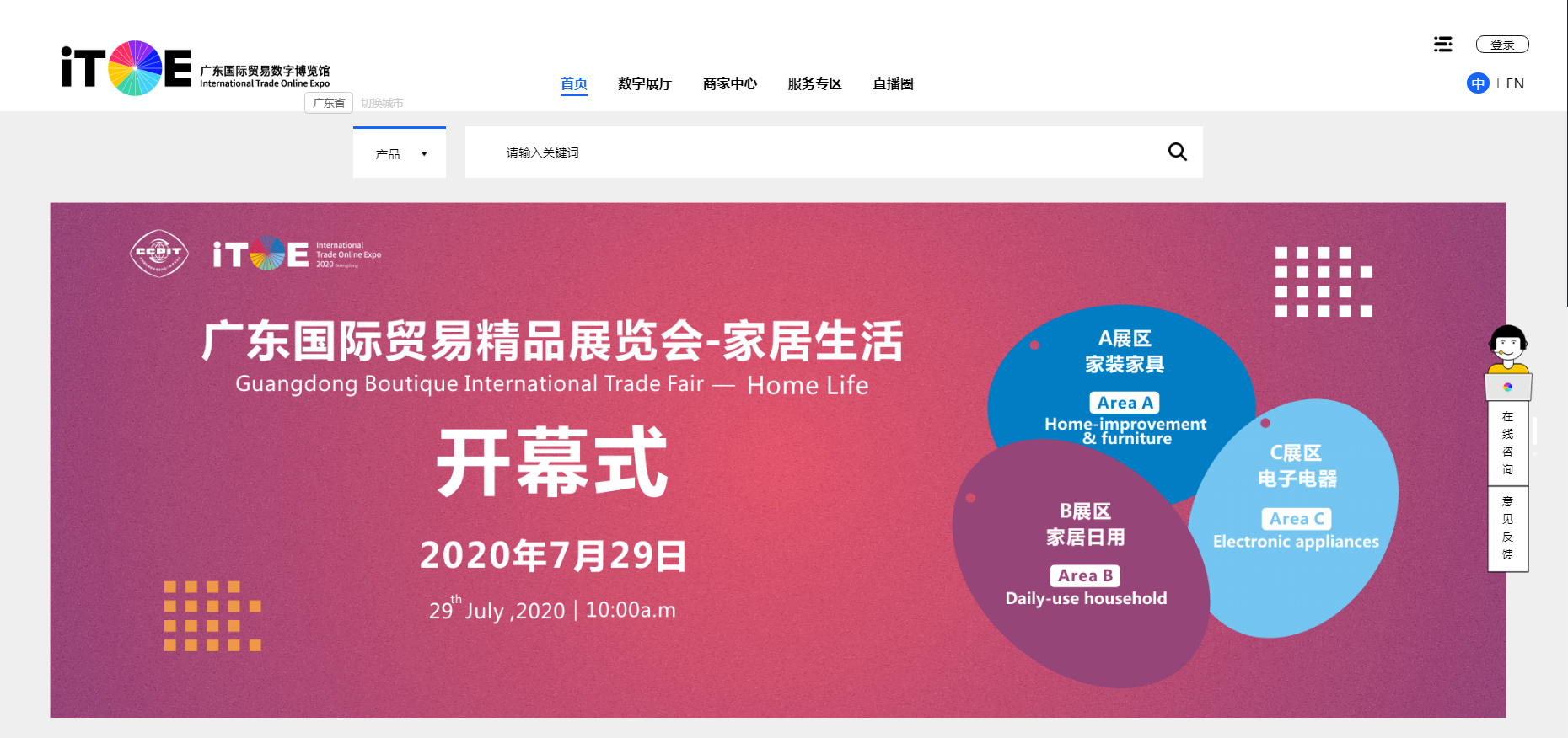 ITOE廣東國際貿易數字博覽館的「數字展廳」、「商家中心」、「服務專區」、「直播圈」四大功能為本次展會展商和買家之間的互動、交流提供技術支持和服務保障。展商不僅可以通過「數字展廳」的3D、特裝實景展位、視頻、圖文等多種方式進行展期的展覽展示,還能通過「商家中心」,在非展期間,持續進行產品的展示、會議洽談。「服務專區」更是平台獨特的資源,平台聯合廣東省貿促會對入駐的商家進行商事認證、聯合第三方服務公司提供法務服務、供應鏈服務、全球售後服務、直播服務、視頻製作、金融服務等。企業還可利用「直播圈」功能進行直播會議、直播推介、直接帶貨等活動。