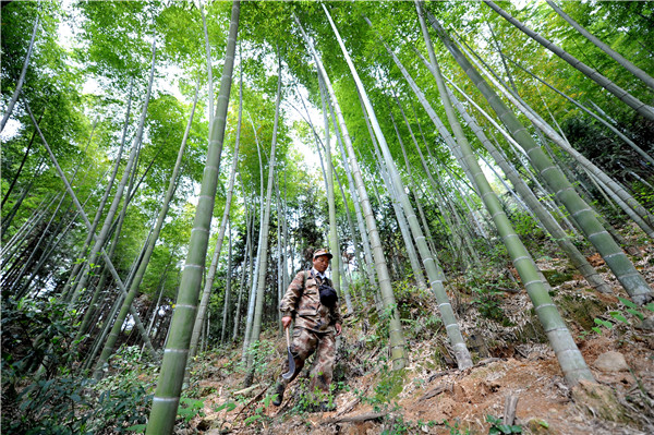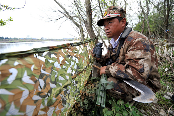 除了秋冬季節護鳥,肖冬樣還擔負著春夏護林的任務。每天8時30分,肖冬樣準時從家裡出發,開始一天的巡山工作。肖冬樣告訴記者,每個生態護林員一天要巡山8小時,路線都是各自所管轄的片區。春夏秋冬,不論是晴雨都是如此,有時為了護林需要,凌晨四五點就要起床出發。面對龍虎山美麗的風景,肖冬樣無暇欣賞,因為巡山的路上,危險無處不在,他必須時刻保持警惕。