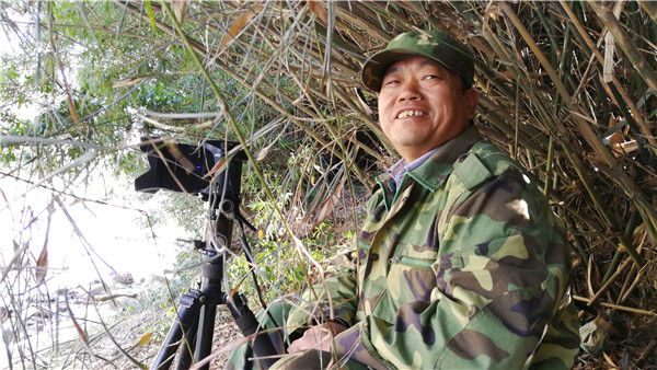 肖冬樣在河邊拍攝中華秋沙鴨。攝影黃劍