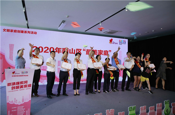 「小家傳大愛」,活動邀請了四組家庭代表在「家庭思享匯」講述家庭背後的美麗故事,用榜樣的力量帶動家庭美德的傳播。為加強廉政文化宣傳,活動現場還啟動了2020年「萬金家書『廉』聯讀」活動,倡導黨員和領導幹部以好的家風促進形成好的黨風政風。活動頒發了2020年南山區「最美家庭」以及同心抗疫「最美家庭」榮譽。今年4月以來,南山區婦聯聯合多個部門開展2020年尋找「南山最美家庭」活動,全區8個街道及區直屬部門全面行動,面向家庭,深入選樹和宣傳家庭的感人故事,推進廉政文化建設向家庭延伸,營造溫馨和諧、清正廉潔的家庭氛圍,構建風清氣正的政治生態和社會環境。全區共推薦尋找出26戶「最美家庭」及15戶的同心抗疫「最美家庭」。