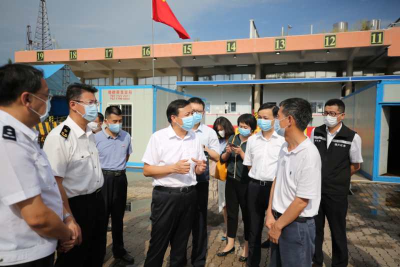 調研的第二站是皇崗口岸,對貨櫃車司機疫情防控點進行調研,鄭紅波聽取了福田應急管理局、皇崗海關、皇崗邊檢站等單位主要負責同志的匯報。