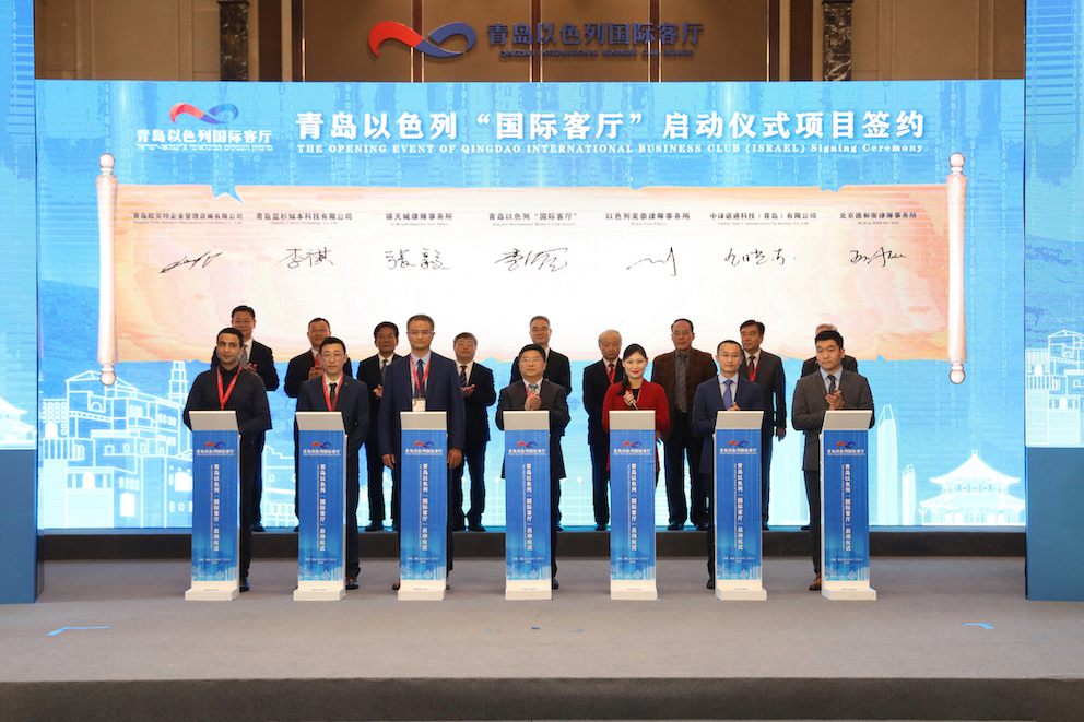 作為青島以色列「國際客廳」啟動儀式的重要內容之一,活動現場舉行了四組項目簽約儀式。青島高新區管委與以色列計劃等數家商協會及青島中以天梯產業技術創新研究院、英飛尼迪集團等數家企業簽署合作協議,中國以色列商會、青島藍杉知本科技有限公司、德衡律師集團、以色列美泰律師事務所等十餘家單位共同加入中以企業家聯誼會。