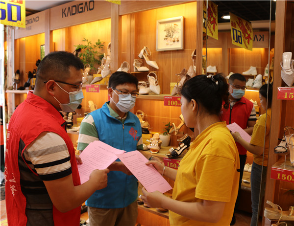 志願者到商戶開展文明經營宣傳(陳素敏攝)