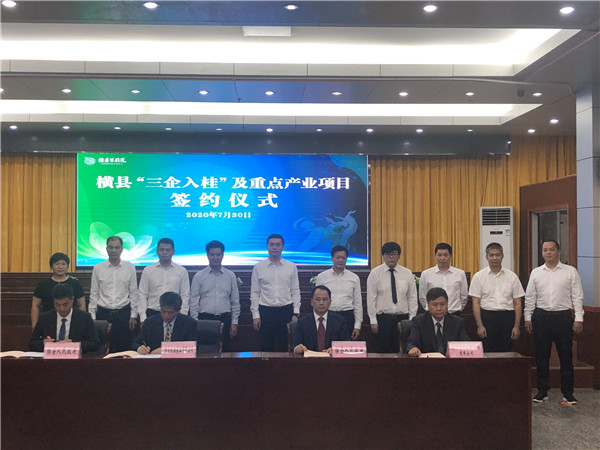 當天,橫縣還舉行了「三企入桂」及重點產業項目簽約儀式,共簽約6個項目,總投資額17.295億元,涵蓋新型建材、生物醫藥、農林產品精深加工等多個領域。橫縣縣委書記黃海韜表示,這6個項目符合全區產業佈局、科技含量高、市場前景好,強鏈補鏈作用明顯、創新引領效應突出,橫縣將強化全方位要素保障,提供最優服務,營造一流營商環境,加快推動項目早開工、早投產、早達效。(馨瑤 徐玉瑩)