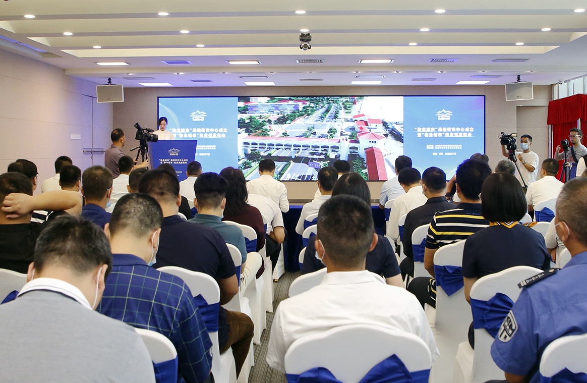 珠海市委政法委副書記李玉東、橫琴新區黨委副書記李偉輝,橫琴新區綜合執法局局長趙振武、北京大學政府管理學院教授沈體雁、全國公共政策研究會副會長陳慶雲、橫琴新區公共秩序協會會長蔡綺娜共同為「物業城市」戰略研究中心揭牌。