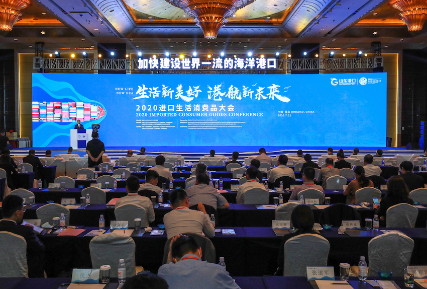 【香港商報網訊】7月31日,由青島市人民政府、山東省港口集團有限公司主辦的2020進口生活消費品大會在青島舉行。大會上,青島海關關長、黨委書記賀水山和山東省港口集團黨委書記、董事長霍高原共同為「中國北方生活消費品分撥中心」揭牌。