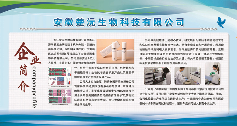 公司依託專業科學團隊的核心技術,研發胚胎幹細胞的抗衰老和傷口癒合及器官修復治療技術,企業技術及產品市場潛力巨大。“目前,我們化妝品銷售的已有2000萬的訂單在排單,前期我們主要是化妝品的代加工,後期會有自己的品牌,預計化妝品正式生產年產值能達到8000萬左右。”
