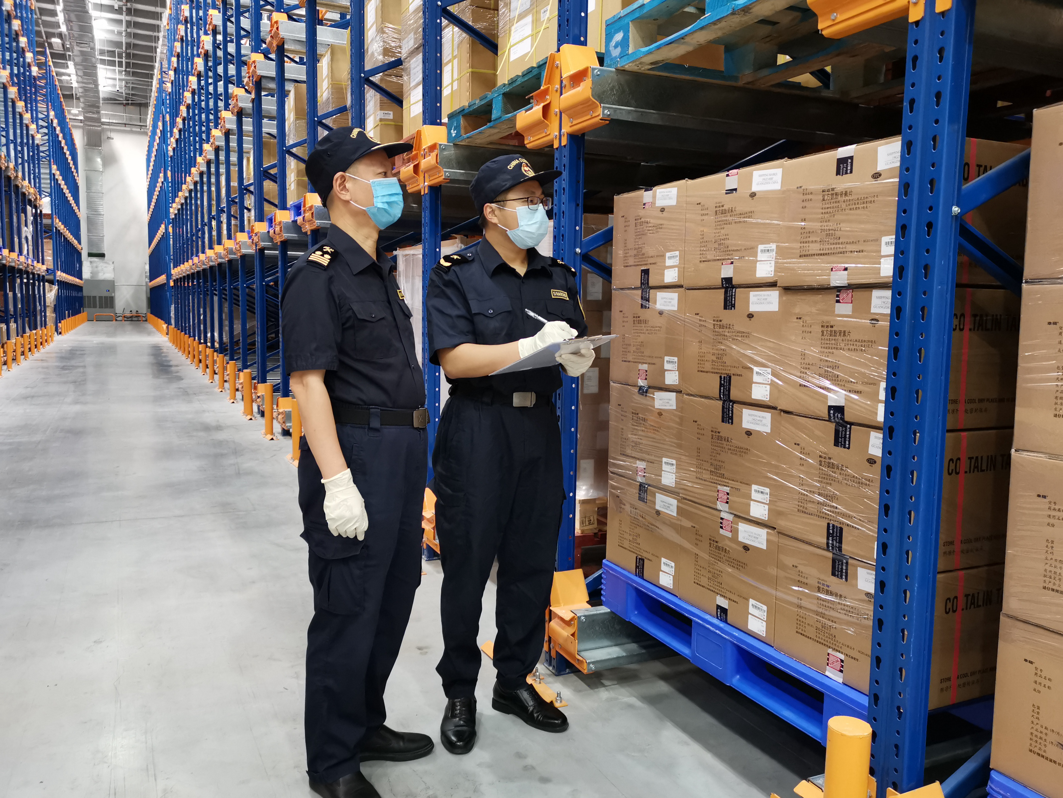 廣州海關所屬南沙海關關員在南沙保稅港區生物醫藥企業倉庫進行巡倉 劉尊嚴 攝
