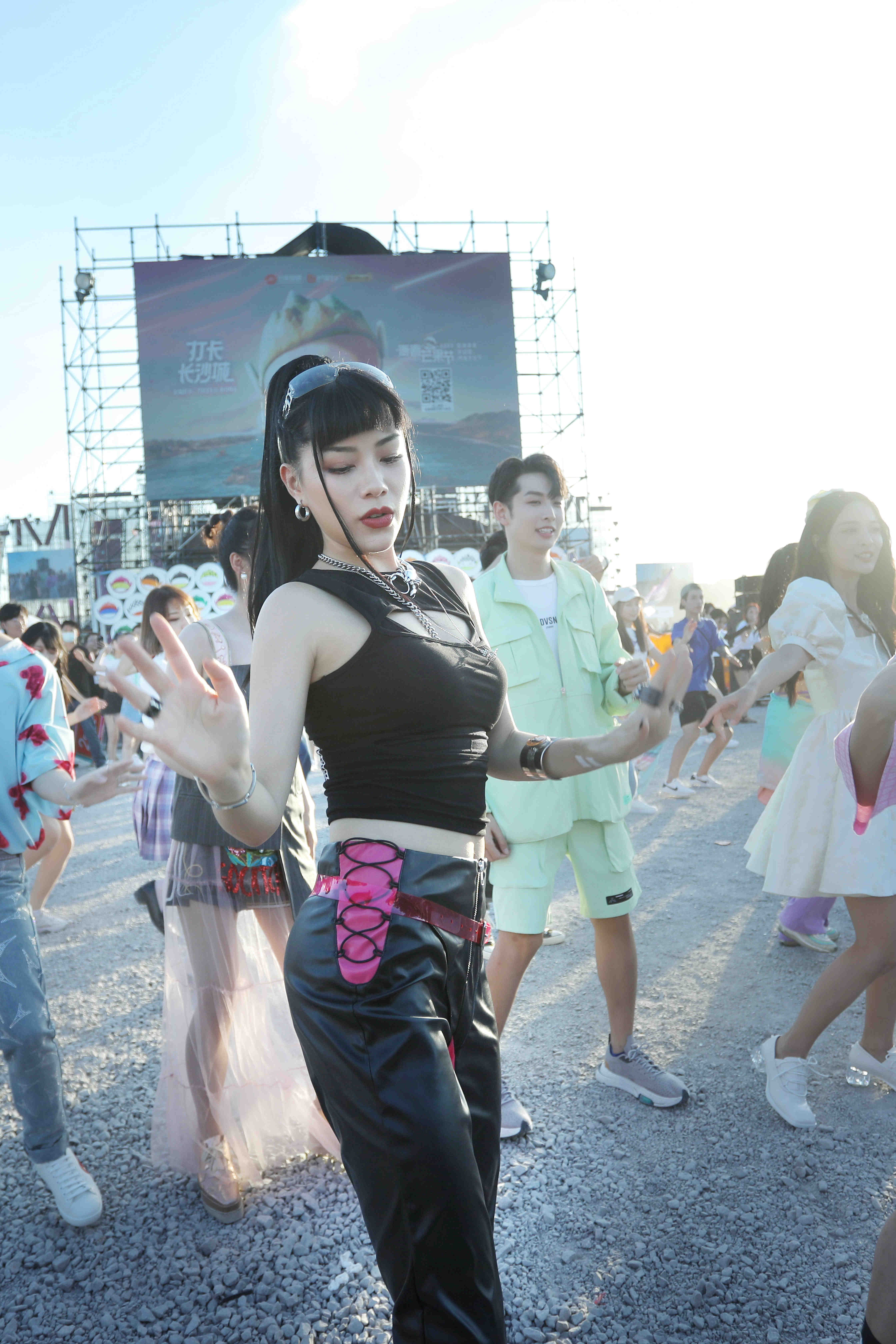 就在快閃的同一天,馬欄山音樂節也迎來了收官之夜,超5萬累計入場人次共赴青春之會。作為音樂節當晚的開場嘉賓,姐姐朱婧汐在快閃結束後立馬無縫切換到歌手模式,在舞台上認真檢查起每一個演出細節,一連帶來了多首自己的當打之作。不僅如此,朱婧汐還邀請到陳松伶、金莎、海陸成團獻唱,一曲《Beautiful Love》重現公演舞台,燃燒的團魂讓浪花們都直呼過癮!