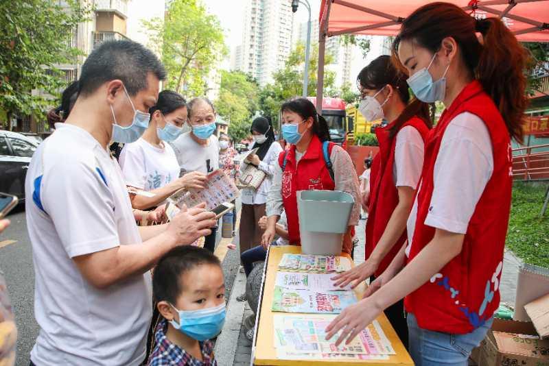 社區開展垃圾分類活動向居民發放宣傳單頁