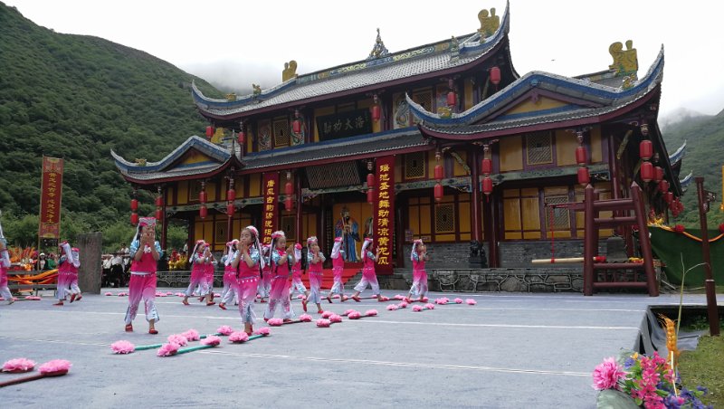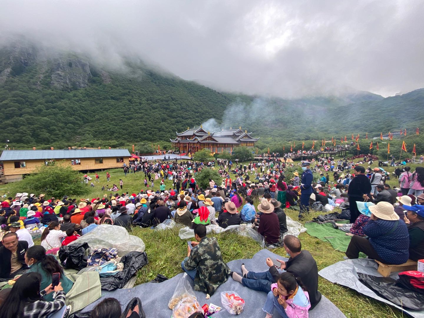 值得一提的是,每年農曆六月十三日至十五日,是一年一度的黃龍廟會。方圓數百里的藏、羌、回、漢等各族群眾盛裝前往黃龍寺祈福還願,跳鍋莊、唱山歌、琵琶彈唱、吹羌笛等眾多原汁原味的民間藝術活動齊齊上陣,展現了黃龍地區深厚的文化內涵,漢風、藏韻、羌情、回俗在此交融互盛,自然風光和民俗文化交相輝映,相得益彰。