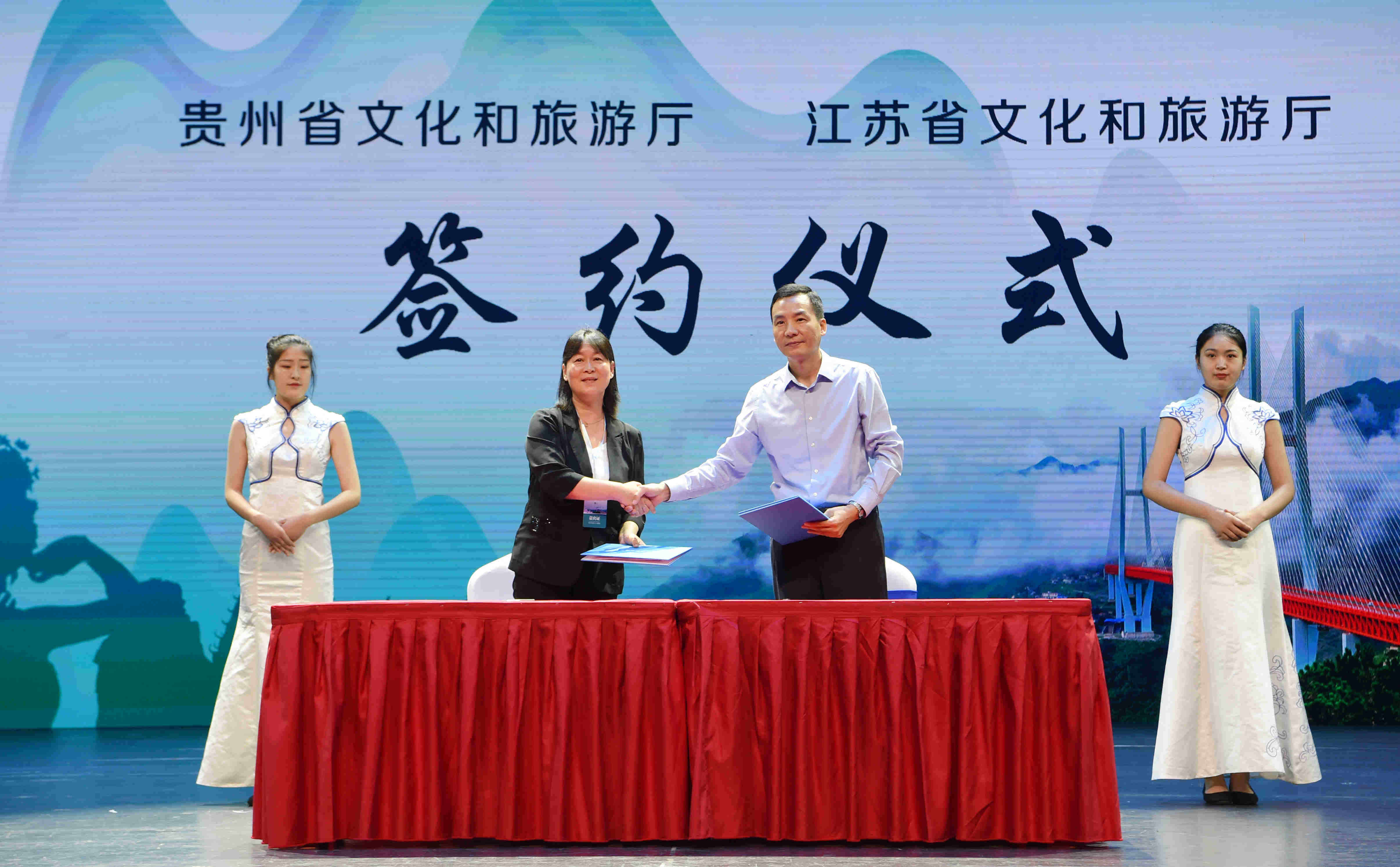 本次活動中,江蘇省文化和旅遊廳、貴州文化和旅遊廳共同簽署《關於共同推動文化旅遊發展的合作備忘錄》。2020年,蘇黔兩省將就客源互輸、產業投資、交通接駁、文旅交流等方面繼續深化合作、謀求共贏。乘着跨省游有條件恢復開放的東風,貴州也將努力抓住文旅產業的重啟契機,加快推動文旅產業發展,着力建設國際一流山地旅遊目的地,國內一流度假康養目的地和民族特色文化強省。