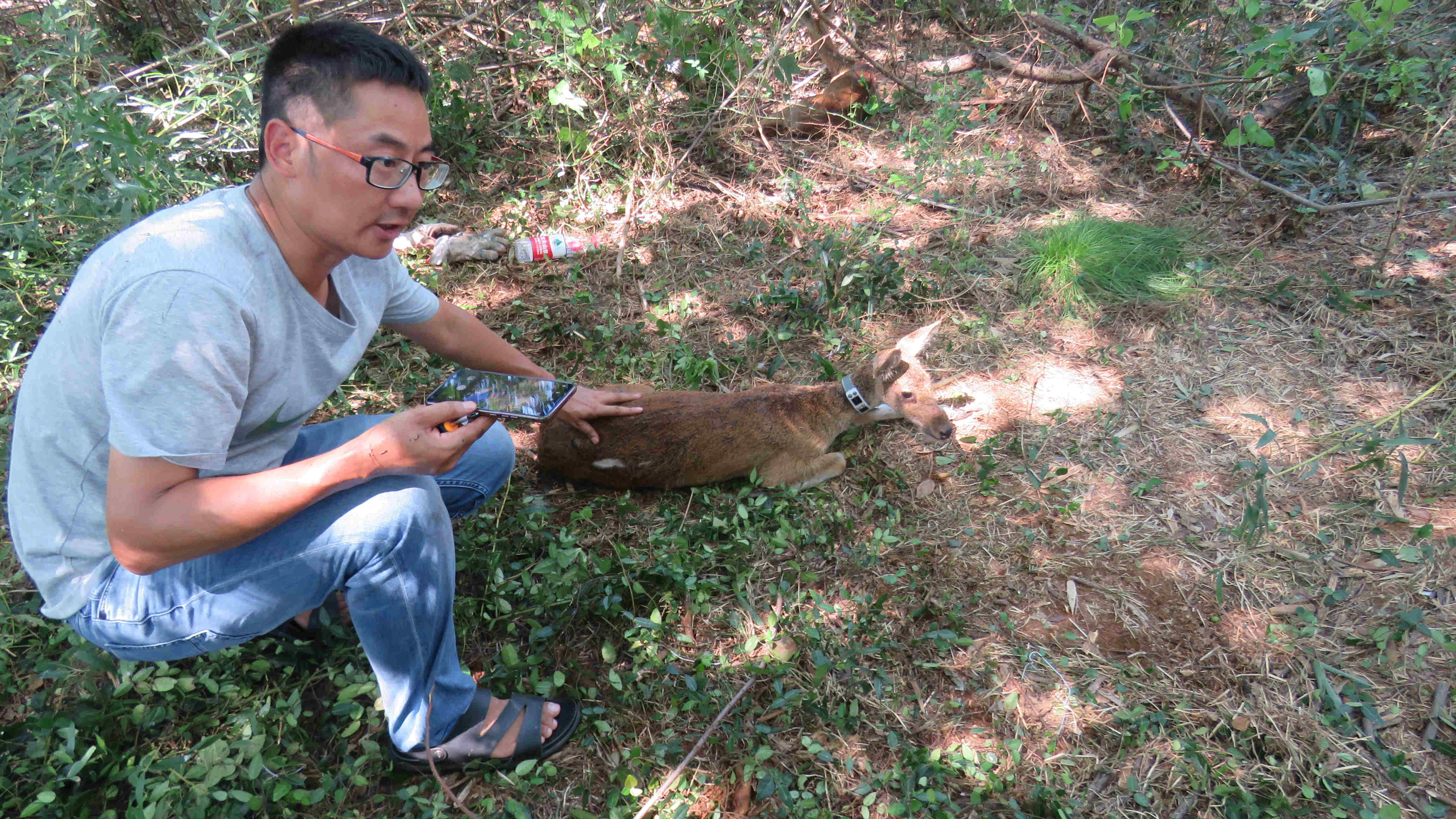 通過衛星跟蹤,工作人員可對河麂的生存狀況進行追蹤,目前,放歸自然的河麂活動狀況良好。(郭美勤 鍾南清 單繼紅 攝影/劉文俊)