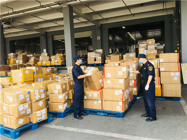 鄭州海關現場關員對跨境電商B2B出口貨物進行查驗