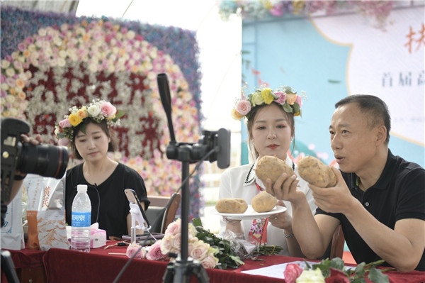 渭源縣委常委、副縣長張顯峰(右)「直播帶貨」
