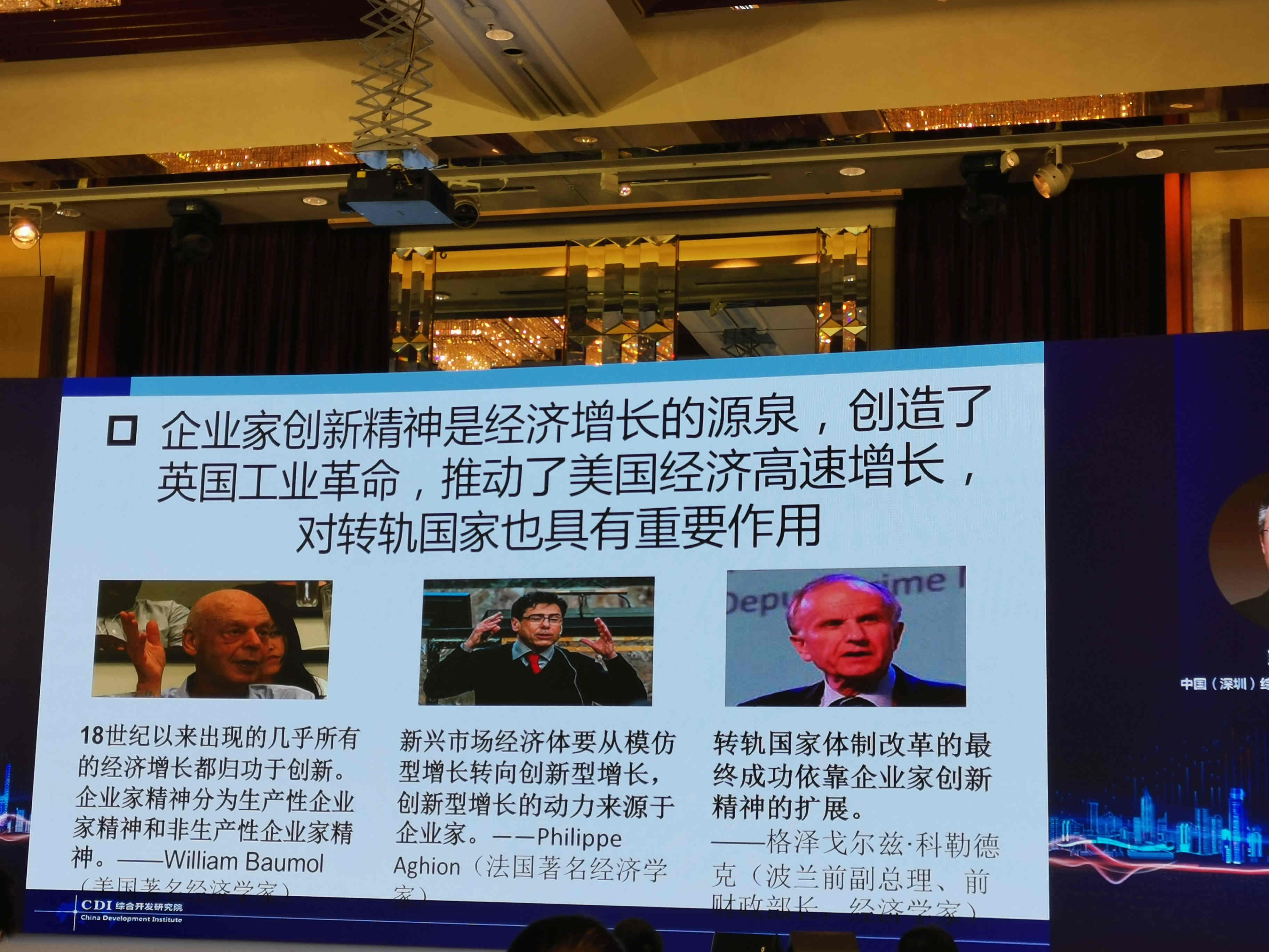 中國(深圳)綜合開發研究院常務副院長郭萬達做了《深圳特區40年:制度創新如何影響企業家創新?》的主題演講。他表示,解放思想是企業家創新的動力源泉,思想是很重要的市場。制度創新重於技術創新,只有給企業家更大的放權,它才能夠形成更大的創新,良好的市場環境,法制環境以及改革,簡政放權,嚴格的知識產權防護,良好的商業環境,公正法制環境,公平的競爭環境,科技的發展,以及科學家工程師企業家的互動,才真正能夠從模仿創新走向顛覆性的創新。