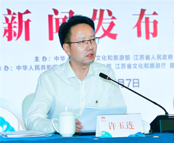 昆山市委常委、宣傳部部長許玉連現場介紹2020年戲曲百戲(昆山)盛典籌備情況
