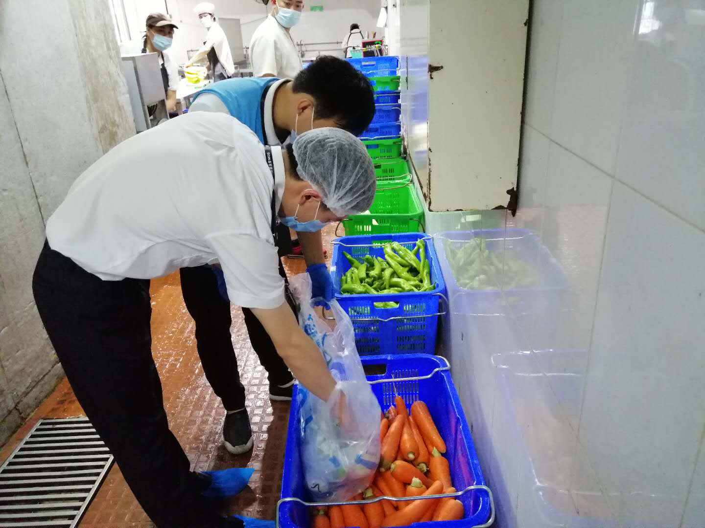 現場,在食堂工作人員的帶領下,大家前往用餐區、廚房進行了實地參觀,從餐具消毒擺放、環境清潔、留樣等後廚詳細管理記錄台賬,到食品原料進貨記錄和採購索證制度……一個個食安工作的細節讓工地食堂企業代表們邊看邊頻頻點讚。