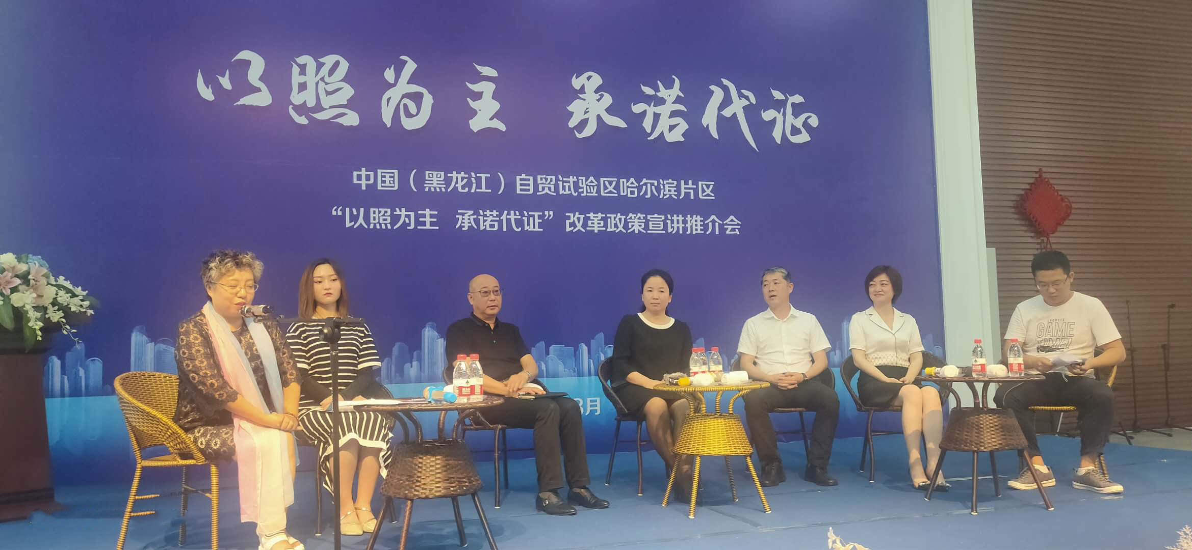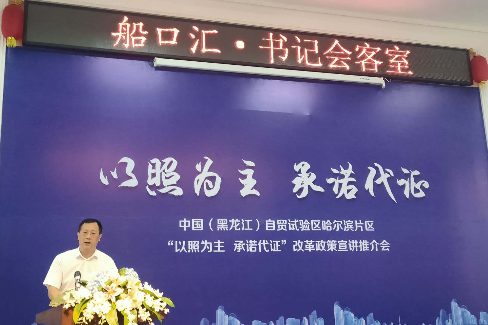 中國(黑龍江)自貿試驗區哈爾濱片區按照黨工委書記、管委會主任代守侖同志的要求,在省、市營商、衛健和市場監管部門的大力支持下,大膽創新,敢為人先,用「承諾代替證明,信用代替跑腿」的改革思路,積極探索在確保審批程序科學、完備的前提下實現行政權力「瘦身」,在國內率先試行「以照為主、承諾代證」改革,這也是自貿區哈爾濱片區為了應對疫情常態化影響,更好地扶持中小微企業成長推出的一項穩增長、穩就業的重要改革舉措。