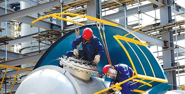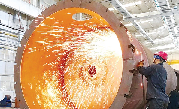 催化裂化項目中,機械廠承擔了101台、2844噸的設備製造任務,其中4台油漿蒸汽發生器結構複雜、材質特殊、技術要求高。在焊接環節,機械廠將入場培訓考試、焊前技術交底、施焊過程監控等環節做實做細,確保焊接質量和效率,為整個項目的推進贏得了寶貴時間。
