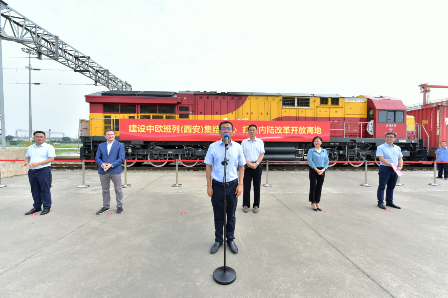 中歐班列長安號防疫物資專列(西安-米蘭)發車儀式現場
