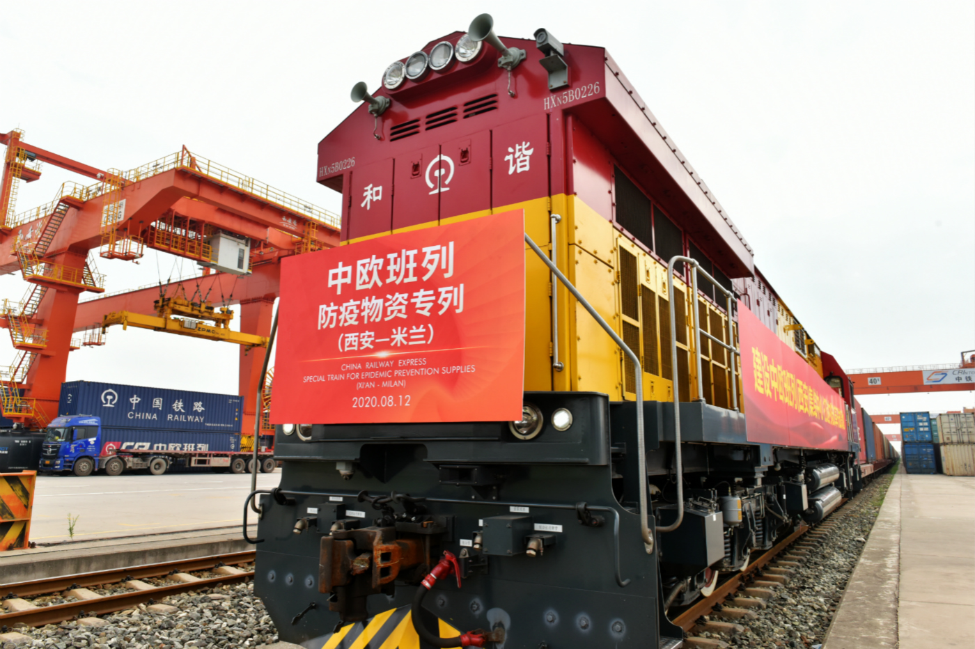 中歐班列長安號防疫物資專列(西安-米蘭)駛出西安港