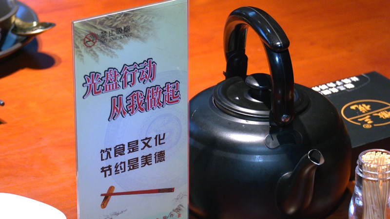 記者還看到,店裏的每個餐桌上都擺有“光碟行動、從我做起,飲食是文化,節約是美德”等文明就餐溫馨提示卡,牆上也張貼了“我承諾,絕不浪費”等宣傳標語,引導消費者理性就餐、理性消費。