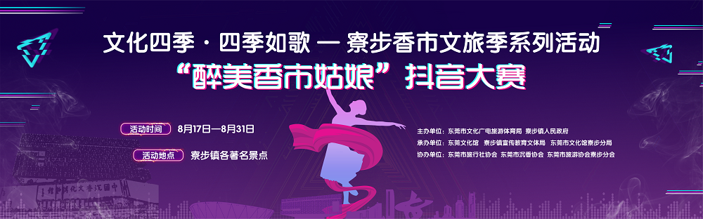 據悉,是次活動將圍繞「古代香市 現代香都」的區域旅遊文化品牌理念,串連整合香市文化旅遊區、牙香街文化旅遊區、香市古鎮、佛靈湖郊野公園、西溪古村、香市動物園等打造極具特色的莞香文化之旅精品線路,從8月17日—8月31日,舉辦「醉美香市姑娘抖音大賽」,凡是女性大學生、遊客、市民大眾等,皆可拍攝讚美寮步特色景點小視頻,上傳至抖音平台參賽。