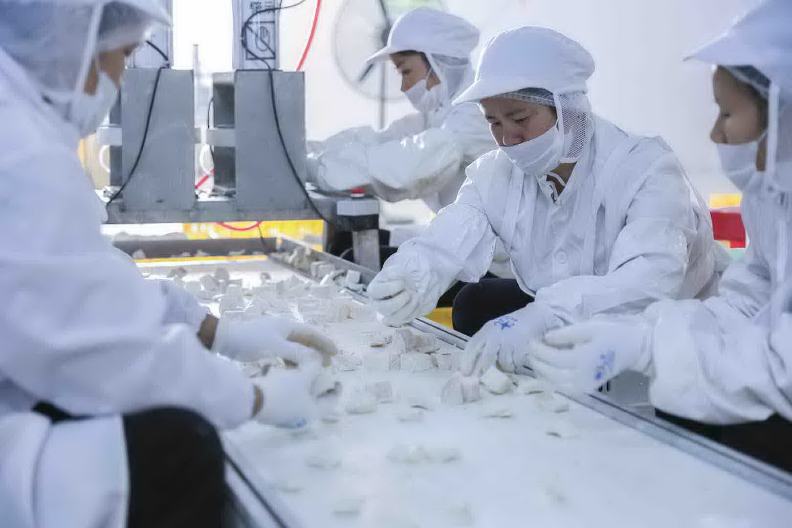 貧困群眾在八步區蓮塘鎮長灣村扶貧車間上班
