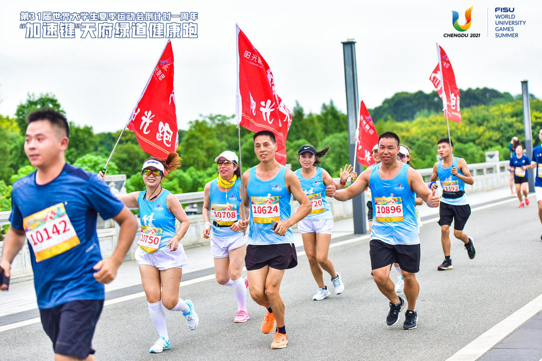 賽事融入美食、休閒、音樂、文創和旅遊等成都符號。賽道上,成都大運會吉祥物、logo與新鮮出爐的主畫面等元素隨處可見,主會場則設置了大運專區。參賽選手們不僅盡情享受綠道健身的快樂,還可以參與大運會展區的活動,用實際行動迎接成都大運會的到來。