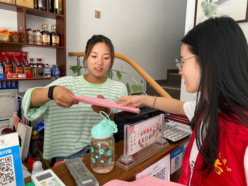 “您好,這個量差不多夠吃了,不夠您再點,浪費可惜。”8月20日,在黟縣宏村得月樓飯店,服務員們習慣地給點菜的客人提醒一句。记者在飯店看到,一些客人用完餐離席後,食客們用餐後的餐盤幾乎都很“乾淨”,吃不完的也會打包帶走。