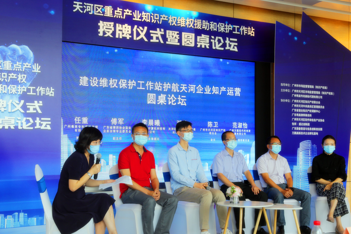 授牌儀式結束後,來自天河區市場監管局、區知識產權聯合會、粵高律師事務所、酷狗音樂等6位嘉賓,就「如何建設維權保護工作站,護航天河企業知產運營」作了圓桌論壇主題發言。討論中,嘉賓與現場來賓一起分享了他們有關知識產權維權保護的構想和建議,讓大家對知識產權糾紛應對和維權保護有了更深刻認識。(賴小青 余文蓮 鄧偉 鄧群英)