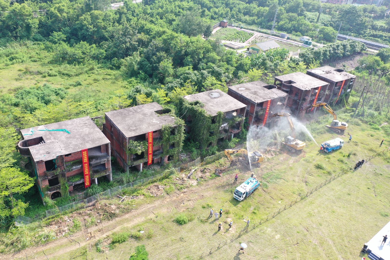 【香港商報網訊】8月21日,深圳市大鵬新區 2020 年度「國土空間提質增效」拆除消化違法建築第五次集中拆除行動在葵涌辦事處溪涌社區舉行,6棟25年爛尾樓正式啟動拆除。