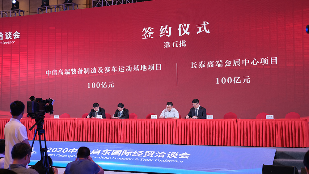 在2020中國·啟東國際經貿洽談會上,兩個100億項目簽約