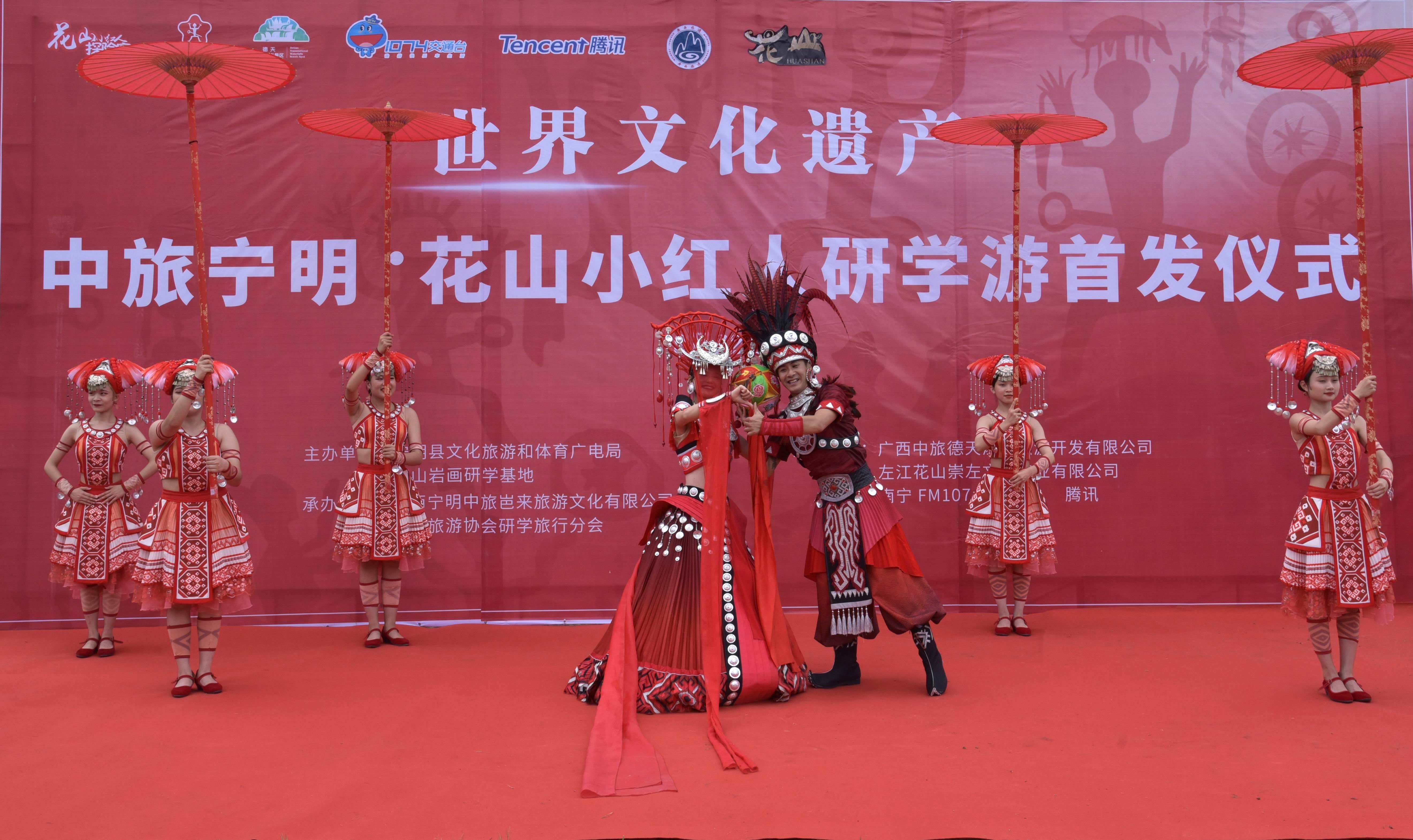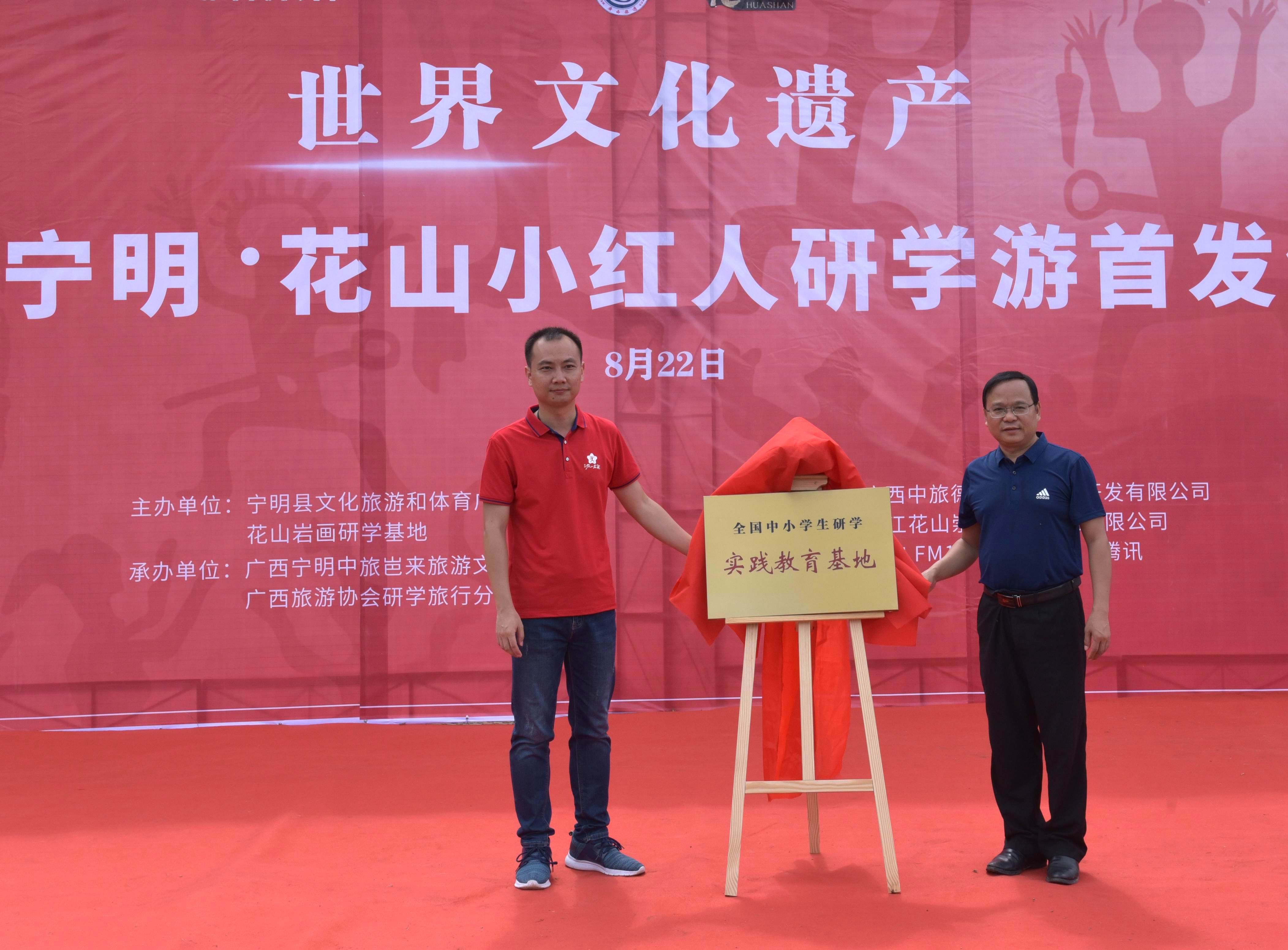 【香港商報網訊】8月22日,2020年世界文化遺產花山小紅人研學游首發儀式在廣西中旅寧明花山岩畫景區遊客服務中心舉行。同時,「全國中小學生研學實踐教育基地」牌匾正式掛牌。