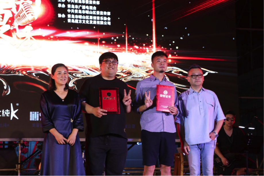 中共嶗山區委宣傳部副部長宋娜、嶗山區原創音樂協會會長張文成為優勝獎代表頒獎
