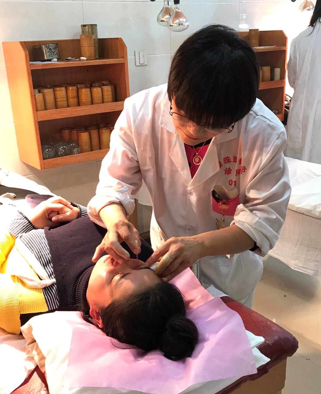 海甯市硤石中學青年教師張海明前段時間患了帶狀皰疹而引起面癱,嘴巴歪斜,眼睛斜視,在海寧的大醫院裡一邊掛鹽水一邊打針灸,但病情並未得到好轉。後從同事口中聽聞翟珠妹的針灸技術高超,特轉來醫治。經過一個多月的治療,徹底治癒。這次他特意趕到診所來表達感謝。